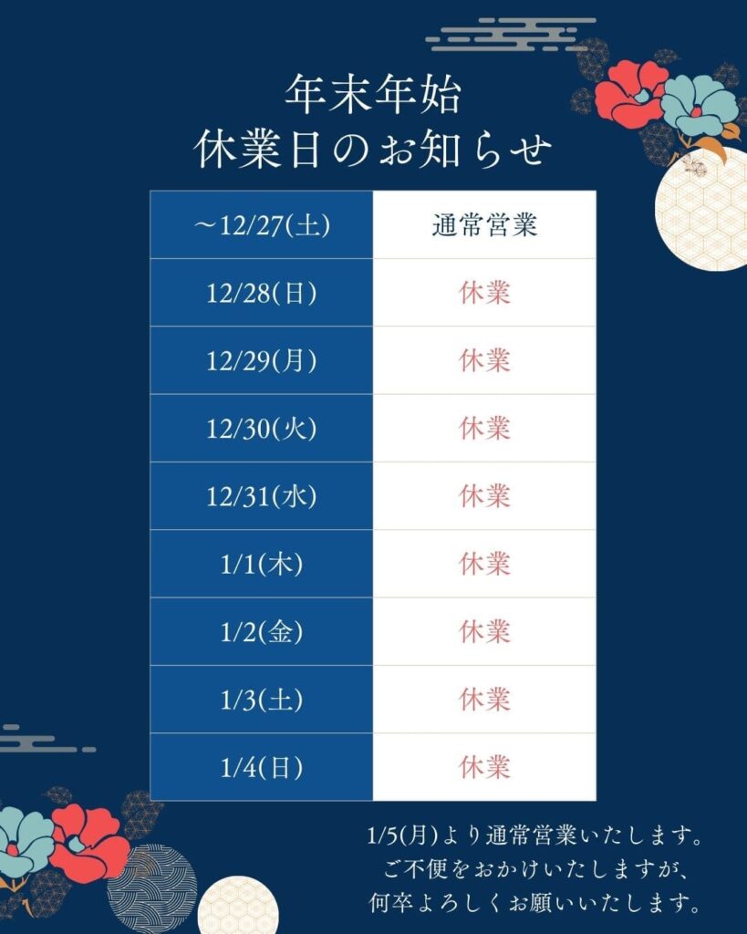 【年末年始の休業期間】2025年12月28日(日) ~ 2026年1月4日(日)