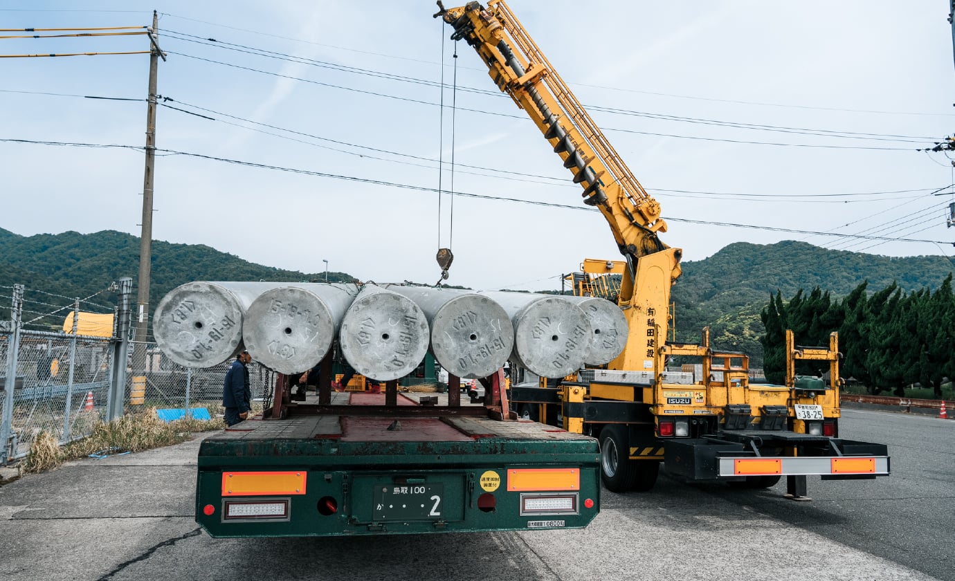 毎日の暮らしに欠かすことの出来ない電力を供給するコンクリートポールの建柱工事を行います。架空ケーブルを支える柱をはじめ、照明柱、太陽光発電の引込柱などを取り扱っています。
